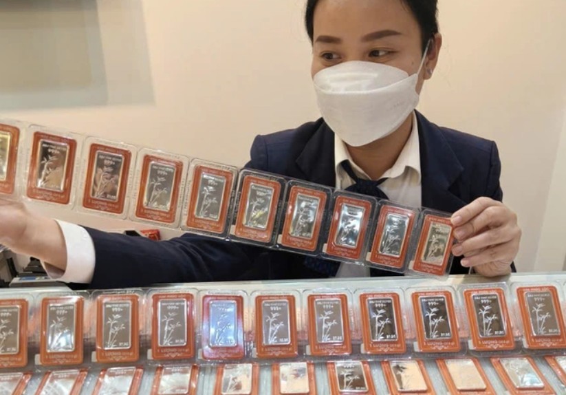 Quy đổi theo tỉ giá niêm yết tại ngân hàng, giá bạc tương đương 3,43 triệu đồng/lượng.