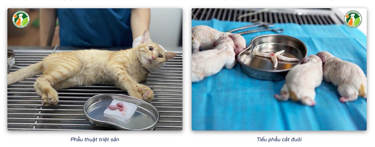 - Phẫu thuật triệt sản: Là quá trình cắt bỏ bộ phận sinh sản để ngăn chặn khả năng động dục và sinh sản. Bằng cách loại bỏ tử cung và buồng trứng ở con cái hoặc tinh hoàn ở con đực.