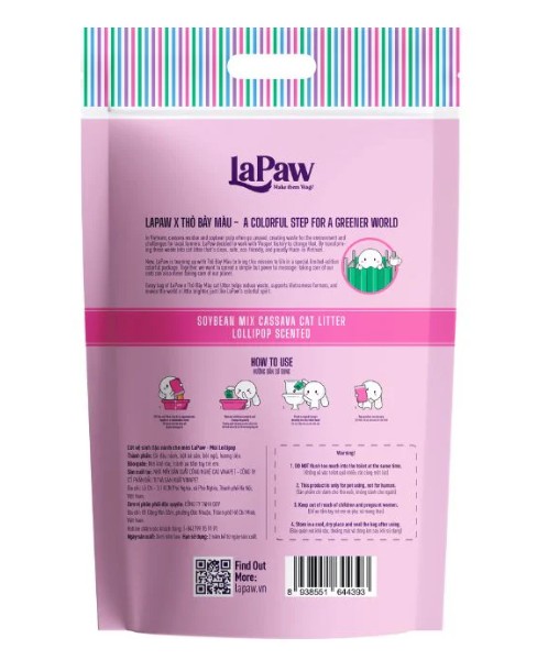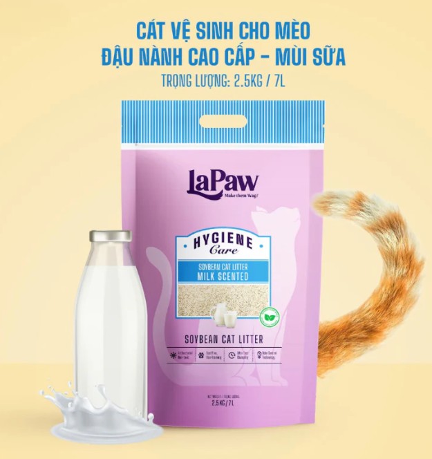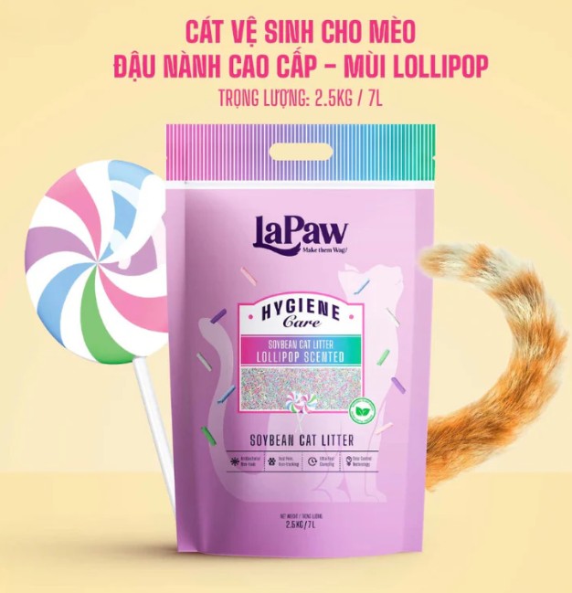 - Cát Đậu Nành LaPaw là cát vệ sinh cho mèo được làm từ 100% nguyên liệu đậu nành tự nhiên, an toàn cho sức khỏe của mèo và môi trường. Cát có khả năng vón cục nhanh và chắc, giúp dễ dàng dọn dẹp vệ sinh khay cát.